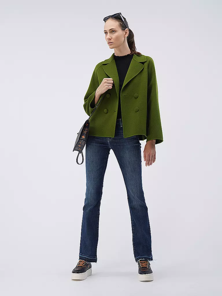 - Schließt zweireihig mit Knopfleiste